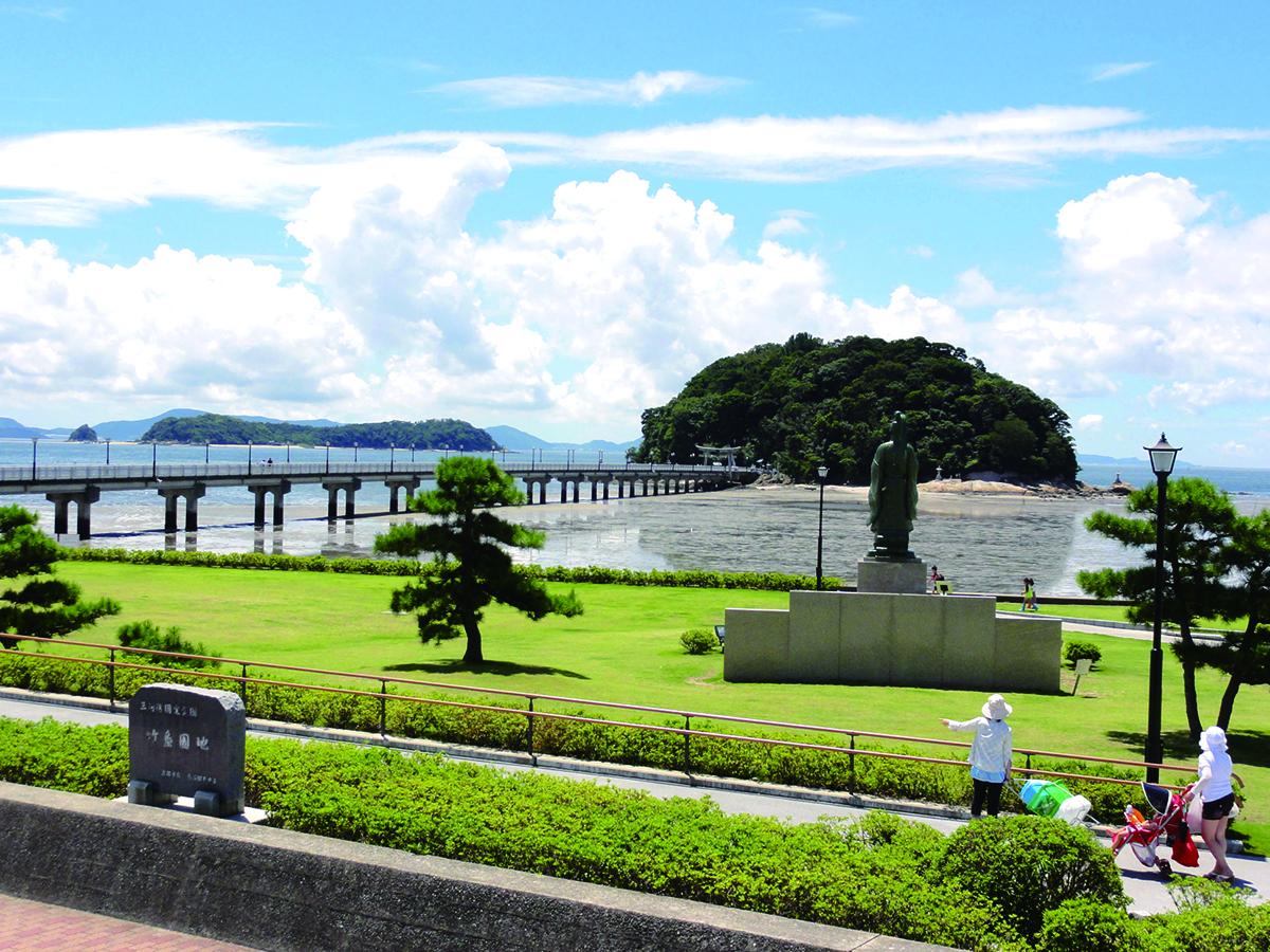 - Đây là hòn đảo nhỏ có chu vi khoảng 680m nổi cô lập trên vịnh Mikawa. Đảo này nằm cách bờ biển khoảng 400m, được nối bằng cầu Takeshima nên có thể đi bộ đến đảo. Bản thân hòn đảo này đã được công nhận là di tích thiên nhiên quốc gia vì có nhiều loài thực vật bậc cao mọc tự nhiên tại đây. Du khách có thể đi hết một vòng quanh đảo trong khoảng 30 phút bằng cách men theo những con đường và những bãi đá nơi thiên nhiên còn giữ vẻ nguyên sơ. "Đền Yaotomi" nằm ở trung tâm của hòn đảo, được biết đến là một trong "Bảy Biện tài thiên của Nhật Bản", thờ vị thần may mắn, sinh con an toàn và kết duyên.